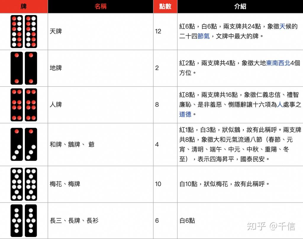 依据两扇骨牌点数的不同组合,来比较大小,以决定胜负。