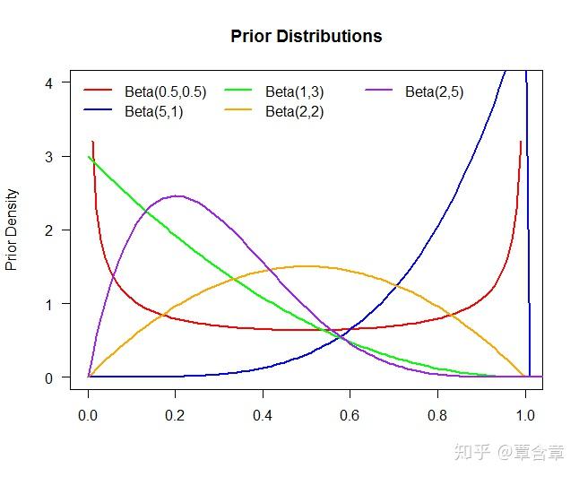 \operatorname{Beta}(\theta ; \alpha, \beta) \propto \theta^{\alpha-1}(1-\theta)^{\beta-1} \\