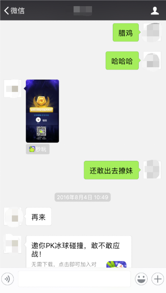 拜托,秒玩一直是我的主场好吗?不知道他哪来的自信,天天挑战我