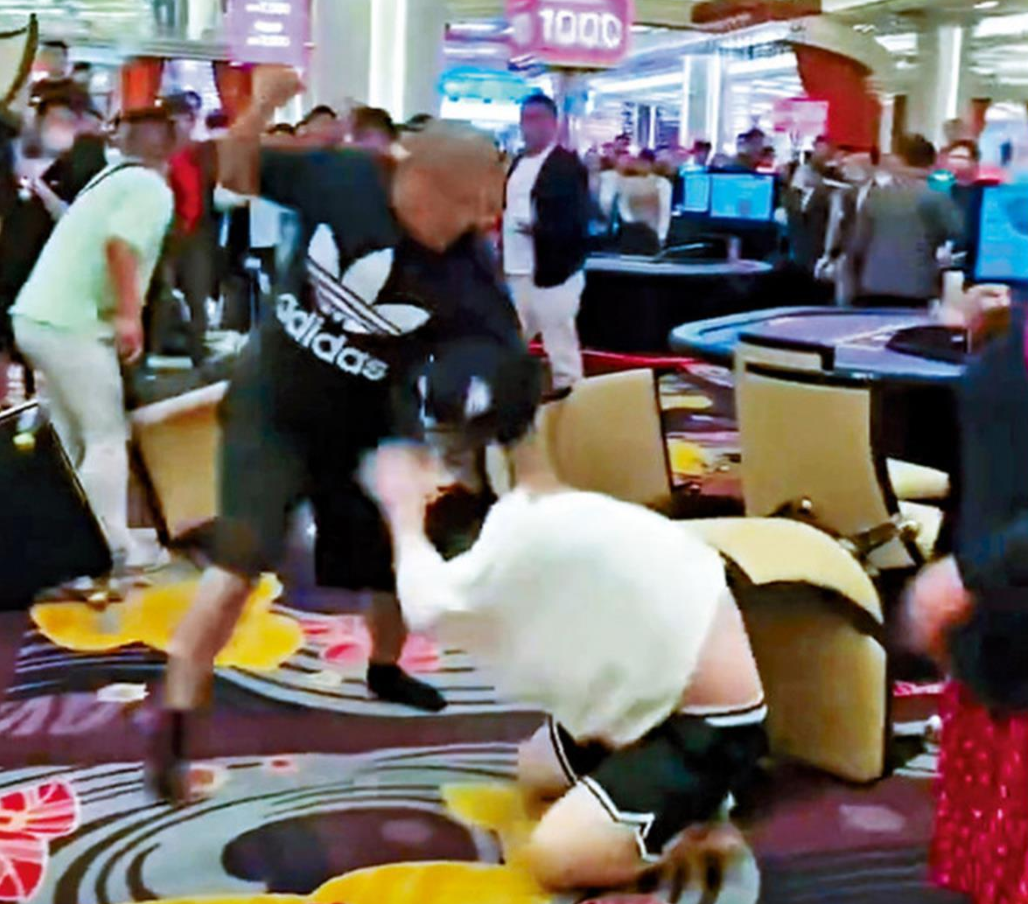 视频显示,多名赌客拳来脚往,有人更举起凳子掷向对方,当中有人被袭击至倒地不起。有赌客见场面混乱,上前劝阻,以普通话称“不要打了”,但劝阻无果。赌场内保安员上前制止并分隔两方人士,随后报案求助。
