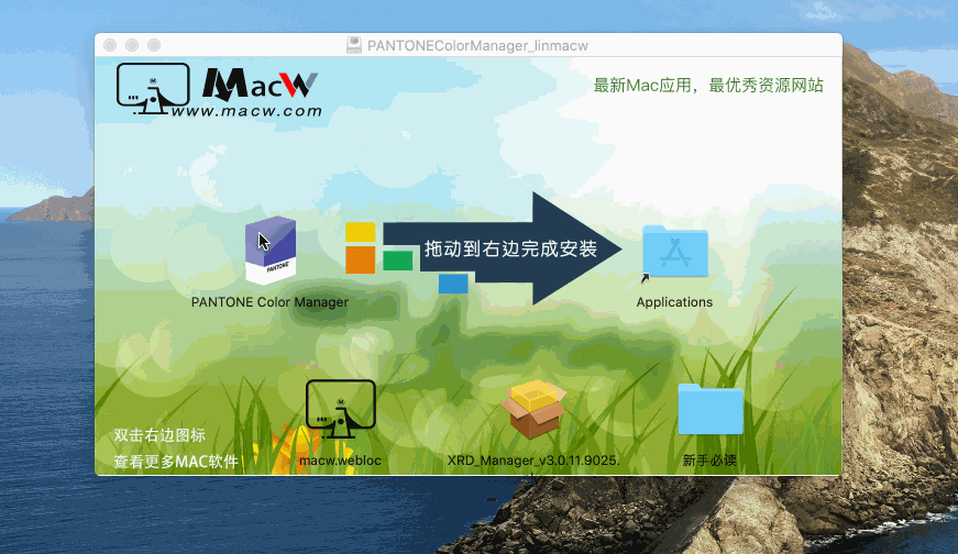 下载并打开安装包,将左侧拖到右侧替身文件进行安装。