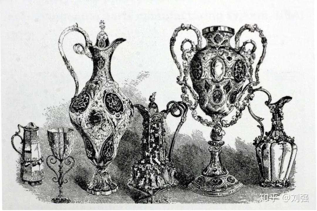图:英国银匠约瑟夫.安格尔设计的酒具(1851)