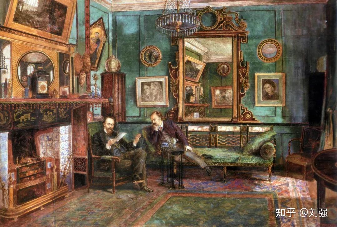 图: 英国画家亨利.T.杜恩(Henry Treffry Dunn, 1838-1899)笔下的维多利亚时期艺术家的客厅。