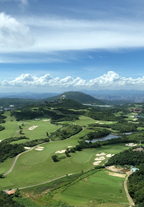 自然之眼观光塔和在上面看到的高尔夫球场和大海